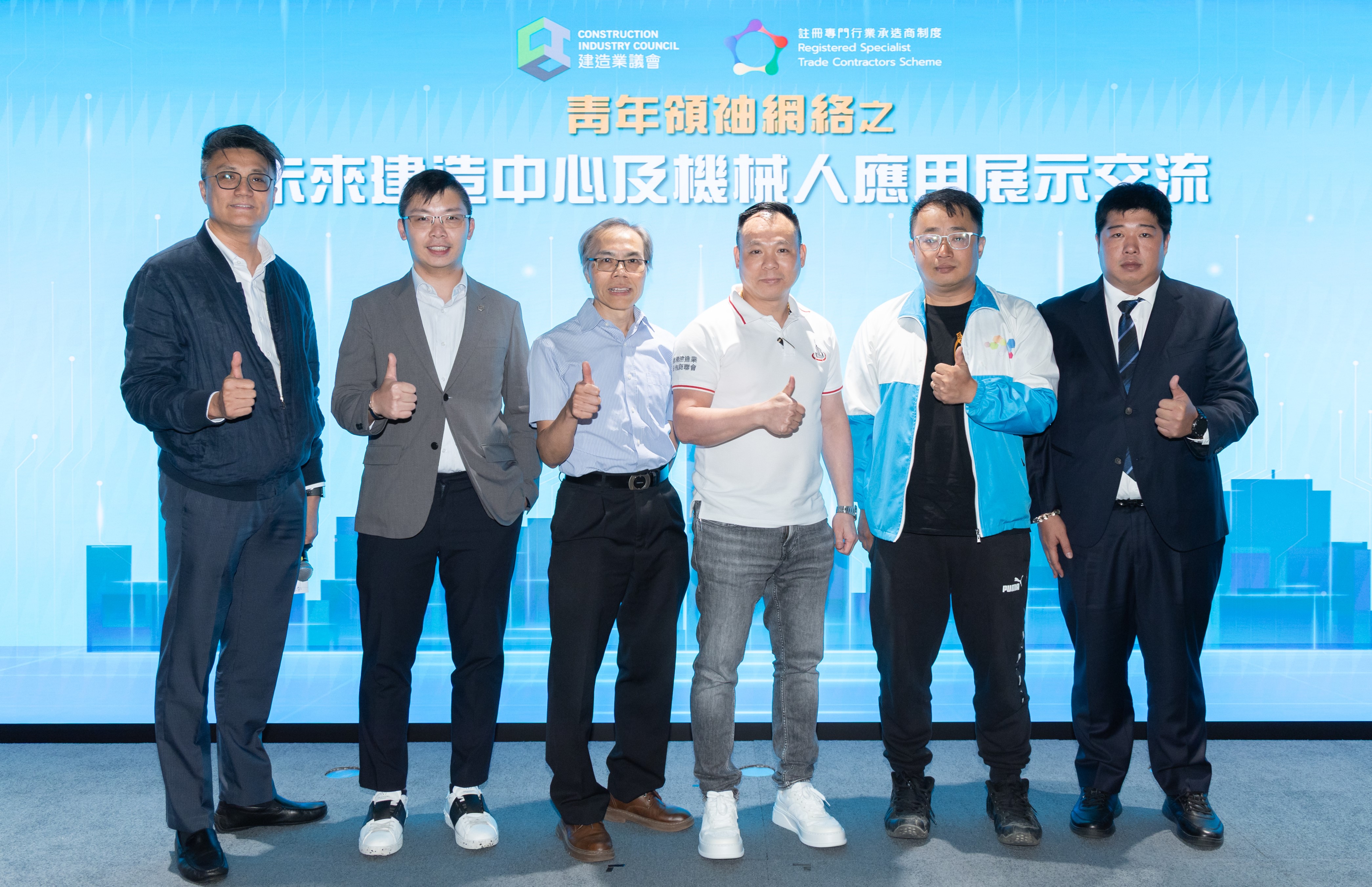 建造業議會未來建造中心在2025年5月29日正式開幕,註冊專門行業承造商制度的青年領袖率先於2025年6月19日及6月24日參觀未來建造中心,並與業界領袖交流應用創新科技及機械人的經驗。